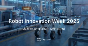 Robot Innovation Week 2025 出展・セミナー登壇のお知らせ 株式会社アプトポッドは2025年12月16日(火)~12月18日(木)に秋葉原UDXで開催されるTechShare株式会社様主催の「Robot Innovation Week 2025」に出展いたします。 本展示会では4 … もっと見る