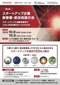 株式会社アプトポッドは2025年10月8日(水)〜9日(木)にトヨタ自動車(本社)事務本館にて開催されるスタートアップ企業 新事業・新技術展示会へ出展いたします。